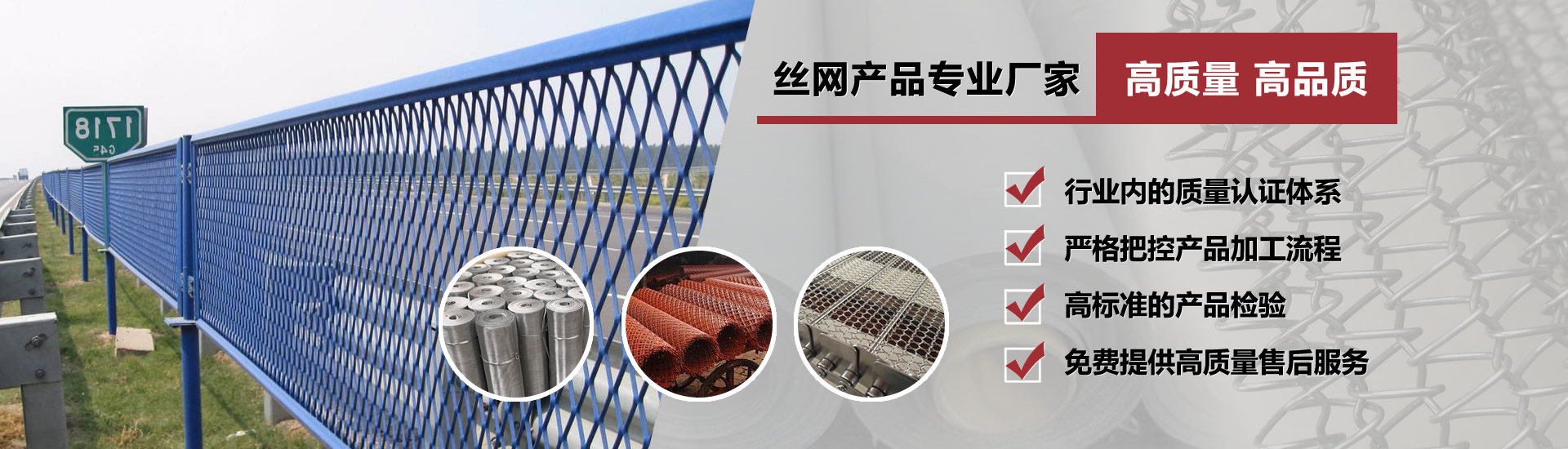 公司不僅有大型鋼板網(wǎng)機(jī)數(shù)臺(tái),大型全自動(dòng)數(shù)控網(wǎng)片機(jī),單股、雙絲刺繩機(jī)等先進(jìn)的生產(chǎn)設(shè)備及精確的檢測(cè)儀器...